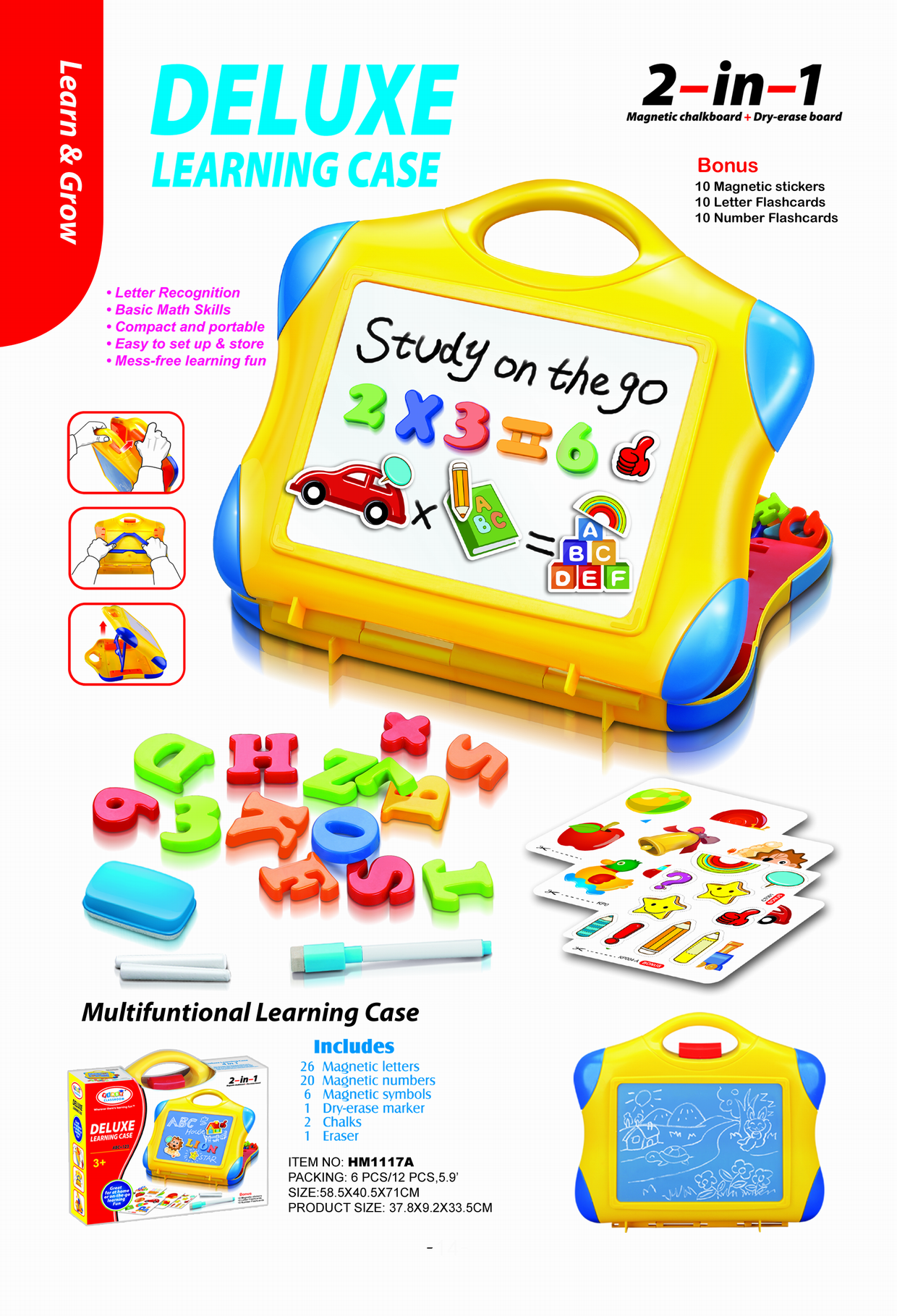 Double sided drawing fun:One side for dry erase maker and worlable for the magnetic letters,numbers ,one side for chalk board.