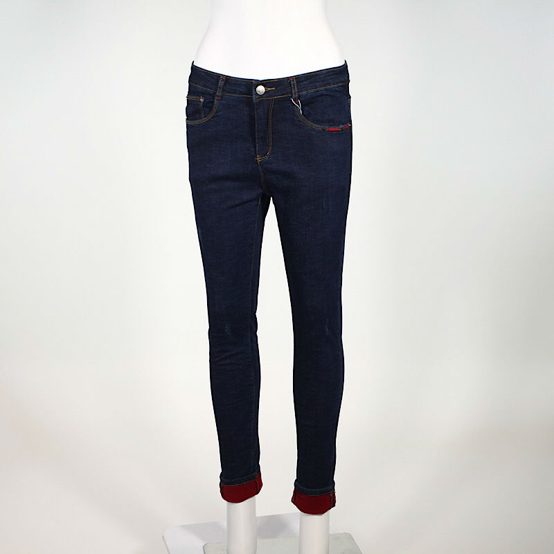 An essential piece for all ladies’ causal wardrobes, this pair of mid-rise jeans fits the curves through the hip and thigh with the skinny, fitted legs. It can be rolled up to reveal the contrasting inner layer for extra style. Complete a cozy off-duty look without sacrificing style wearing it together with a sweater and sneakers.