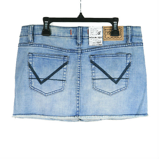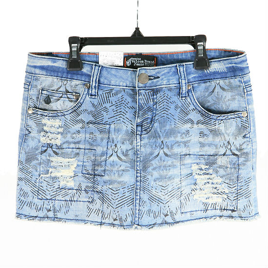 This miniskirt features symmetrical patterns with an interesting layout in the front. The denim is ripped and stitched to simulate patchwork in creating a distressed look. This casual piece plays up a stylish attire whether paired with boots or sandals.