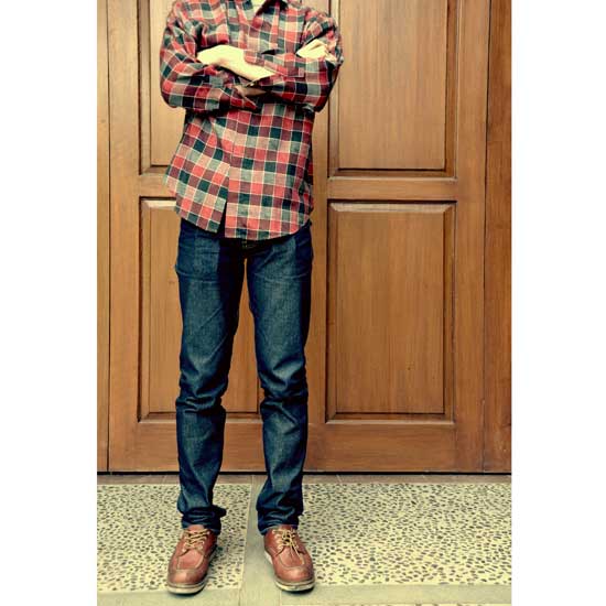 The denim trousers are finished with a slim cut. They are made out of 14.05oz raw pure indigo denim and finished with chain stitches. This pair of trousers makes an easy match for your daily street outfits.