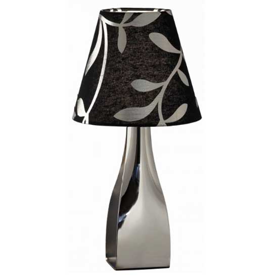 This modern-designed desk lamp comes with a textile lampshade, embellished with silvery leaf-like patterns. The base of it is made of metal with chrome plating. It is well-polished to a smooth and shiny surface for added grand style. This gorgeous lamp is ideal to decorate your table and desk while providing great illumination.