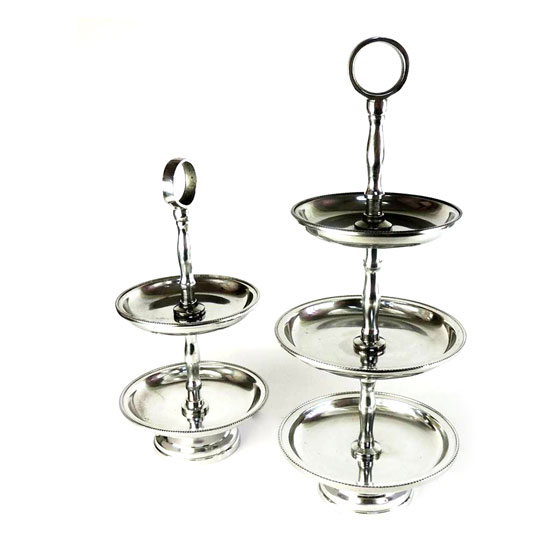 This household tray comes with a 2-tier and 3-tier design. It features a loop handle for easy carrying. It is perfect for displaying cup cakes, chocolates and snacks on this tray at cocktail parties and casual occasions.