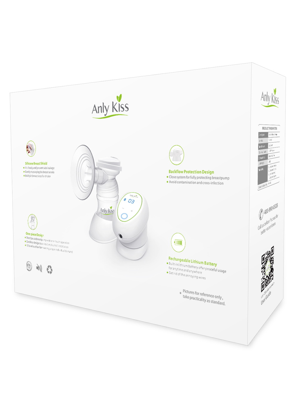 The breast pump is made with high quality silicone. It would be more comfortable than PP shield, and it is suitable for any size of breast, good for preventing side leakage. And we provide two breast shield(24mm & 27mm) in it.