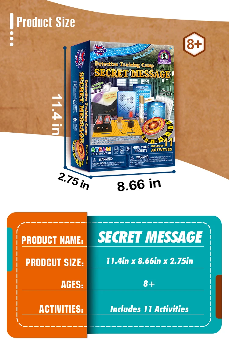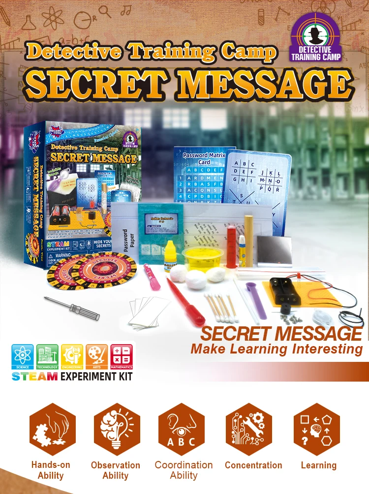 This product is Detective Training Science Educational Kit Secret Message With 47 Tools to Collect Finger Print and Train the Observe Skills for kids, it includes invisible words, password matrix card , perforated grid coding and handmade telegraph etc. 47 science experiments tools. It is a great science gift for kids to do detective role plan!