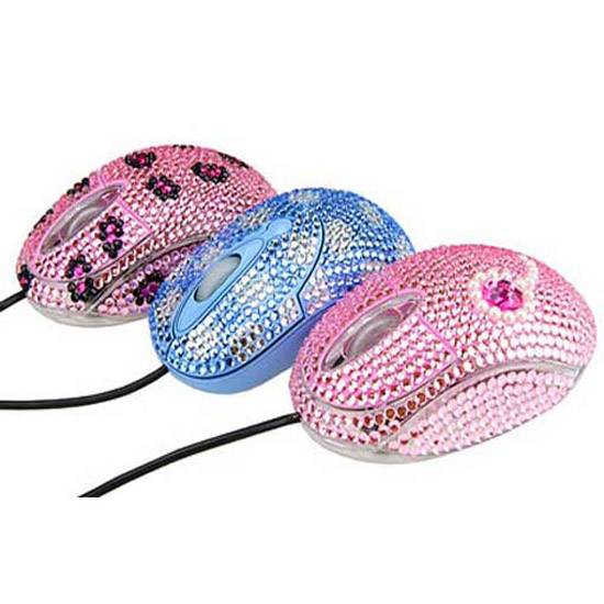 The optical mouse is fully adorned with eye-catching diamante decoration. It features LED light illumination on the inside. It boasts pinpoint accuracy with smooth tracking on most surfaces. The 3D optical mouse enhances your work efficiency while lightening your work area.