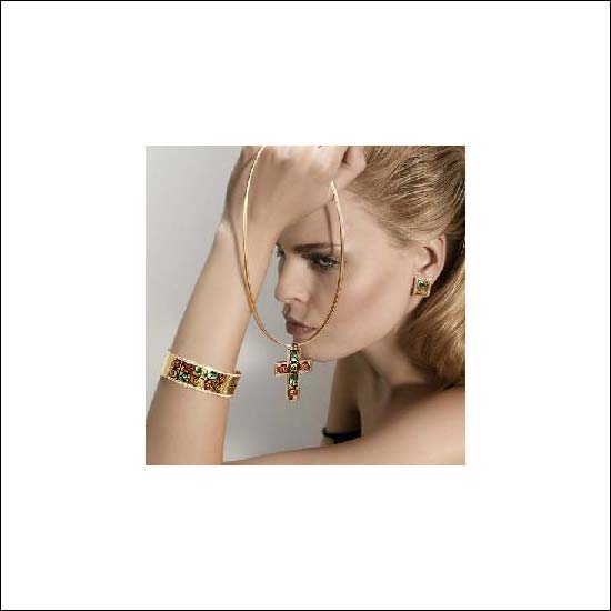Lustrous jewelry set include a necklace, a bracelet and a pair of earrings.