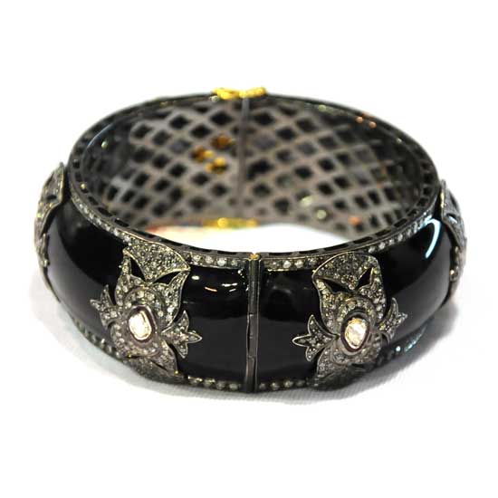 The bangle flaunts silver and 14K gold casting with enamel finishing. The rose-cut diamonds add a touch of luxury to the bangle. Add this diamond bangle to your fine jewelry collection.