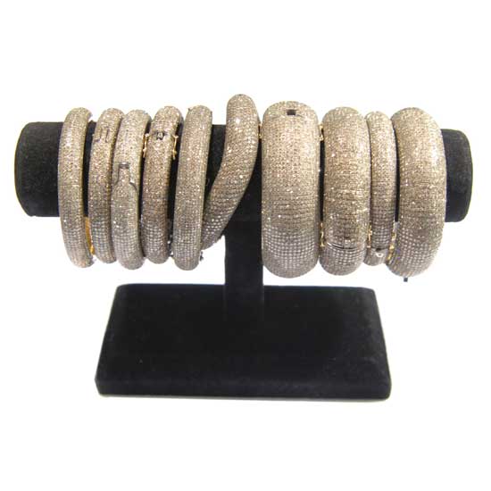 Shown here is a collection of diamond bangles in various sizes. They feature silver and 18K gold casting for long-lasting beauty. Highlight your style with these glittering bangles.