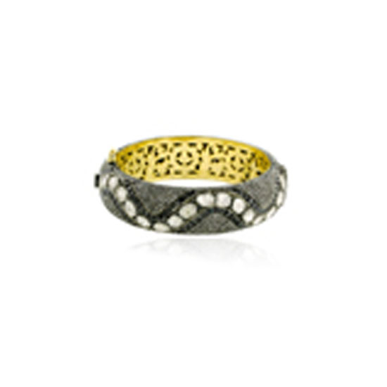 Displayed is a diamond bangle that comes in a fashionable design. With large rose-cut diamonds, this bangle is sparkling and eye-catching. This stylish diamond bangle is great for jazzing up your daily look.