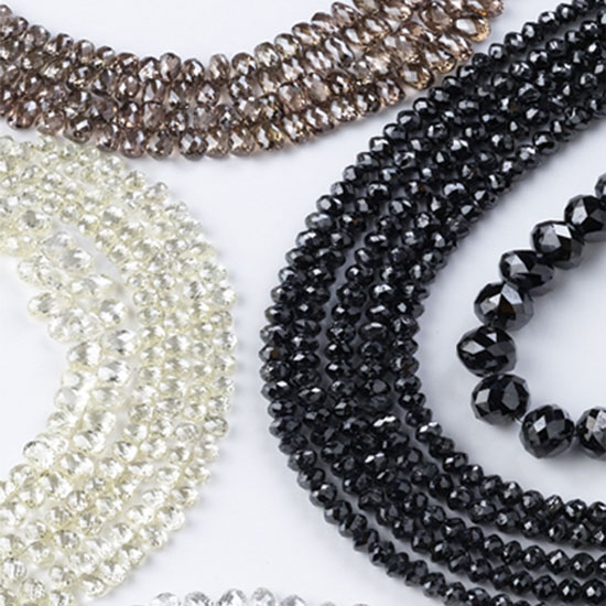 Showcased are diamond beads with incredibly charming colors and shine. The bead boasts perfect surface smoothness to unleash the most alluring glow no obstruction. This diamond bead can be intricately woven in strings to form precious pieces of art.