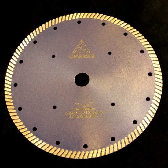 The diamond blade is a saw blade with diamonds fixed on the base. The diamonds are used to cut hard or abrasive materials. It can also be used to cut wall and floor tiles with a polished finish, leaving no cracks on the surface. This diamond blade features sharp edges and an excellent heat dispelling rate.