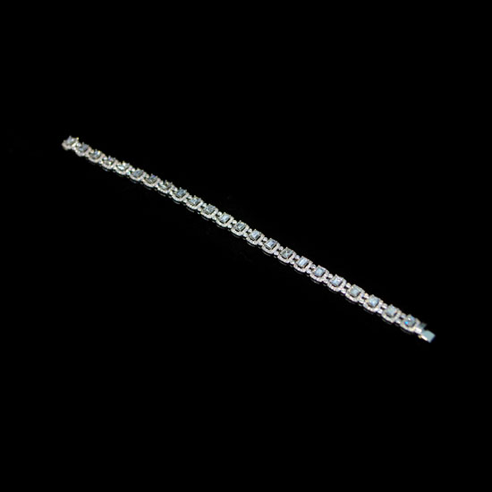 This glamorous bracelet is made of 18-karat white gold and shimmers with a high-gloss finish. It is well linked with square settings that are paved with dazzling diamonds. This refined bracelet makes an ideal addition to complete your jewelry box.
