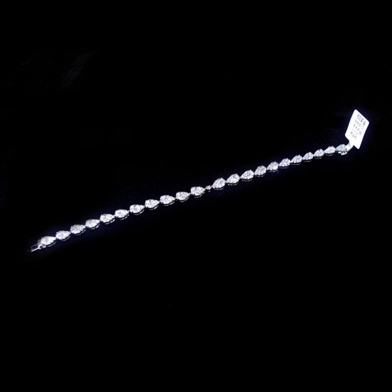 This is a bracelet with a dainty and elegant design. It is made of 18K white gold and is finely inlaid with shimmering diamond stones. This bracelet goes well with assorted high-fashion outfits.