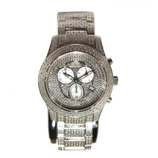 The chronograph watch designed for men is characterized by its elaborate appearance. It is fitted with 3 sub-dials and a date display for added utility. This timepiece also comes with a rugged stainless steel case.