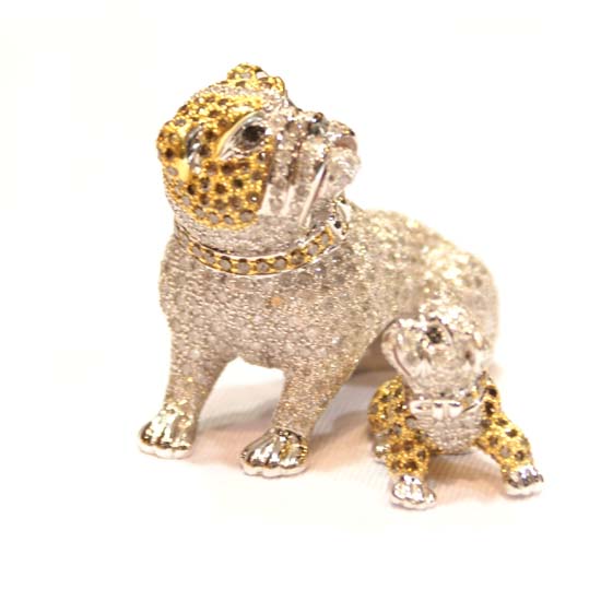 The diamond decoration depicts the mother dog and her beloved son with a lifelike appearance. The 18K white gold construction ensures years of shimmer. The dazzling diamond accents offer lavish elegance.