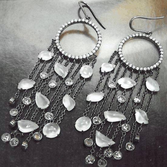 This pair of gorgeous earrings features circle construction with diamonds all over. The dangling ice-like jades showcase a touch of sophistication. This gorgeous pair of earrings makes a great addition to your jewelry collection.