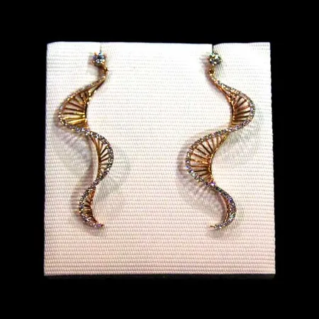 Featured here is a pair of stylish earrings that is designed for active ladies. These earrings have a unique DNA double-helix design. The edges of these earrings are further adorned with diamond pave setting details. Simply wear these earrings for unmatched elegance.