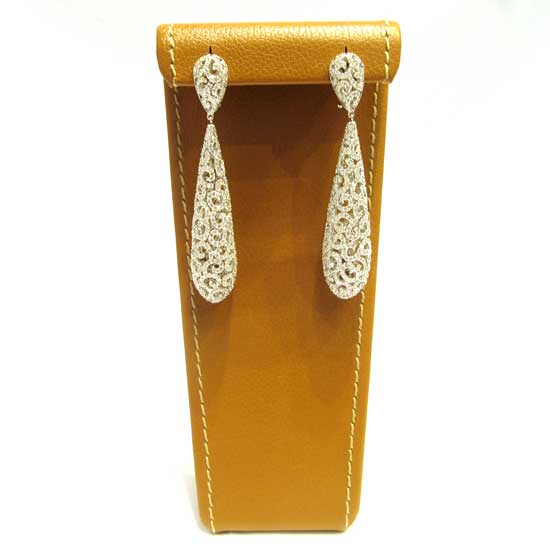 Shown here is an ornate pair of diamond earrings that flaunts shimmering elegance. These earrings feature stylish teardrop-shaped design. These simply are the worthy addition to your jewelry collection.
