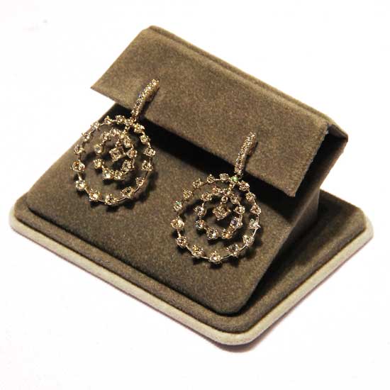 Featured is a pair of earrings made with loose diamonds. The design reminds people of the vintage romance. The whirlpool twisting design gives this pair a unique personality.