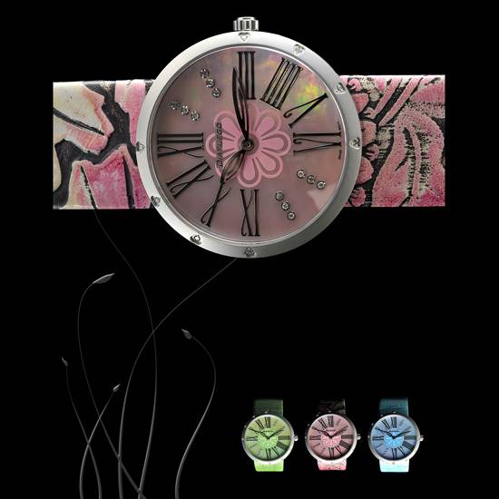This is a jewellery watch engraved with 20 fine diamonds. 12 of the diamonds are arranged with bezel setting on the dial and the other 8 pieces are in triangular shape with flush setting on the frame of the watch.