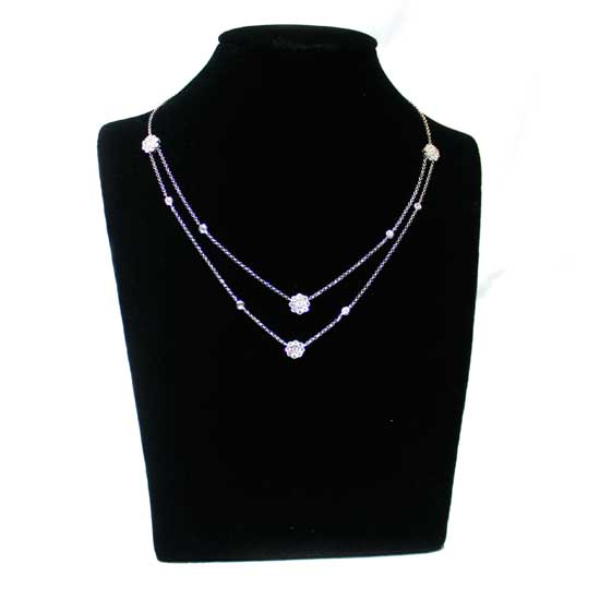 This classy necklace comes with a double-layer design that speaks elegance and style. The exquisite 18K white gold construction and the sparkling diamonds used give this necklace a sophisticated touch. This diamond and white gold necklace simply makes a decent addition to your fine jewelry collection.