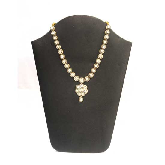 The exquisite necklace is crafted with silver and gold in a highly polished finish. It is encrusted with rose-cut diamonds to give a lustrous look. Add sparkles to your outfit with this necklace.