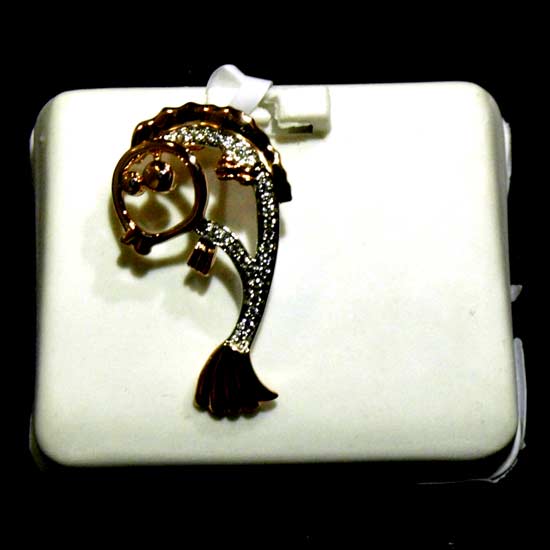 This piece of diamond pendant comes in an adorable fish shape. The glittering loose diamonds are sturdily embedded on the top-quality 18K gold frame. This item is youthful and fashionable.