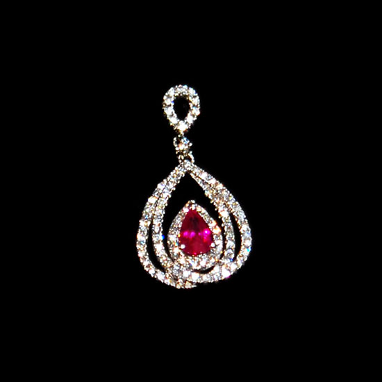 This stylish pendant comes with a fashionable and luxurious design. It is crafted with dazzling diamonds and a ruby stone for an eye-catching look. This diamond pendant will surely make you stand out from the crowd.