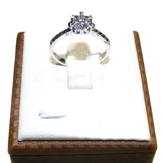 This is a ring with diamond of 0.3 carat. The frame is made of platinum 950, which lets the rings be hard and wearing-resistant.
