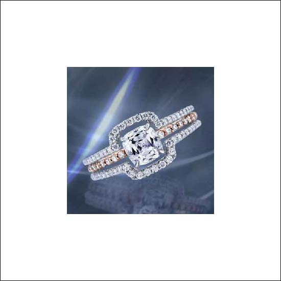 - Round cut diamonds in bead setting on the open designed white gold and yellow gold.