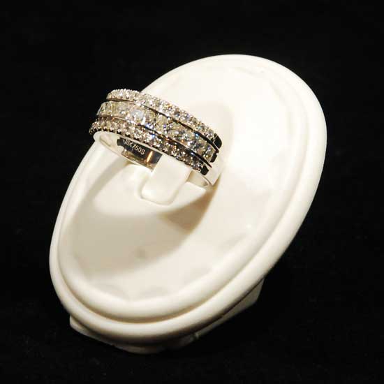 Presented here is a diamond ring in 18K white gold. The diamond ring comes with a 3-row design. Each row is encrusted with brilliant-cut loose diamonds for a designer's touch. This diamond ring is a great addition to your jewelry collection.