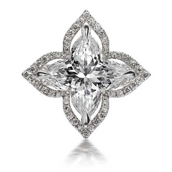 This 18K white gold ring features an attention-grabbing faceted diamond in an Orchidea cut. The GIA certificated diamond enjoys exceptional clarity and full luster. This charismatic ring is a fabulous gift for ladies.