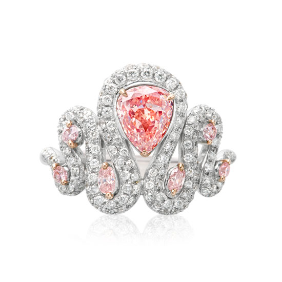 This is a gorgeous finger ring with a fashionable and stylish design. This ring is crafted with pink diamonds for an elegant touch. This diamond ring is finely made with great craftsmanship and delicate details for an eye-catching look.