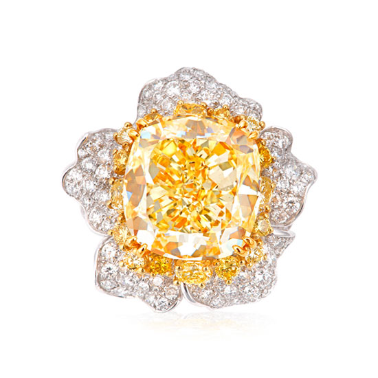This finger ring is designed in bright yellow for an eye-catching look. It is finely crafted with fancy yellow diamonds for an elegant touch. This diamond ring makes a pretty way to complement your stylish look.