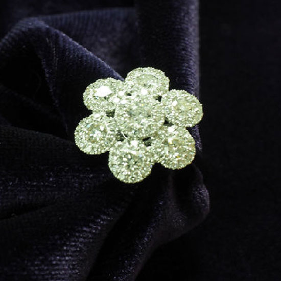 This stunning diamond ring is styled into a six-petal flower. 85 brilliant-cut diamonds are pave set on 18K white gold for a touch of luxuriousness. The near colorless gleams of this ring are truly impressive.