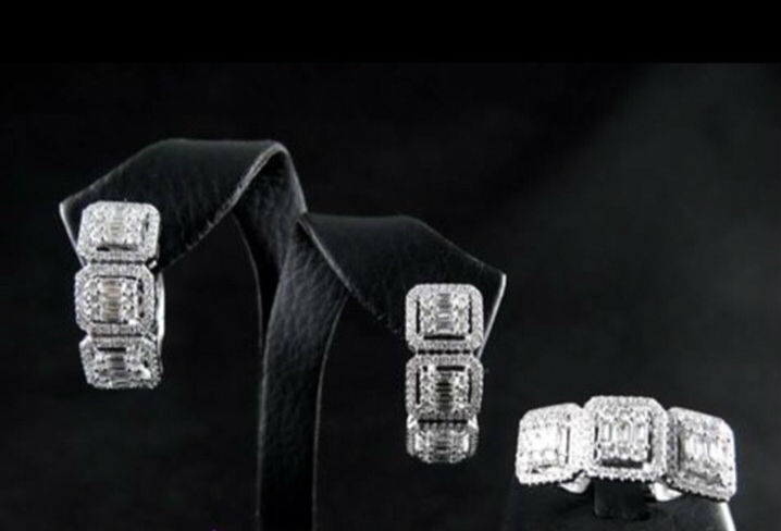 14 kw diamond ring and earringswith bagguet and round diamond