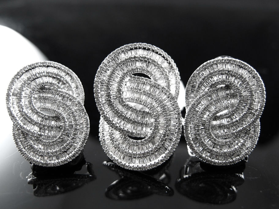 14kw tapper and round diamond ring and earrings