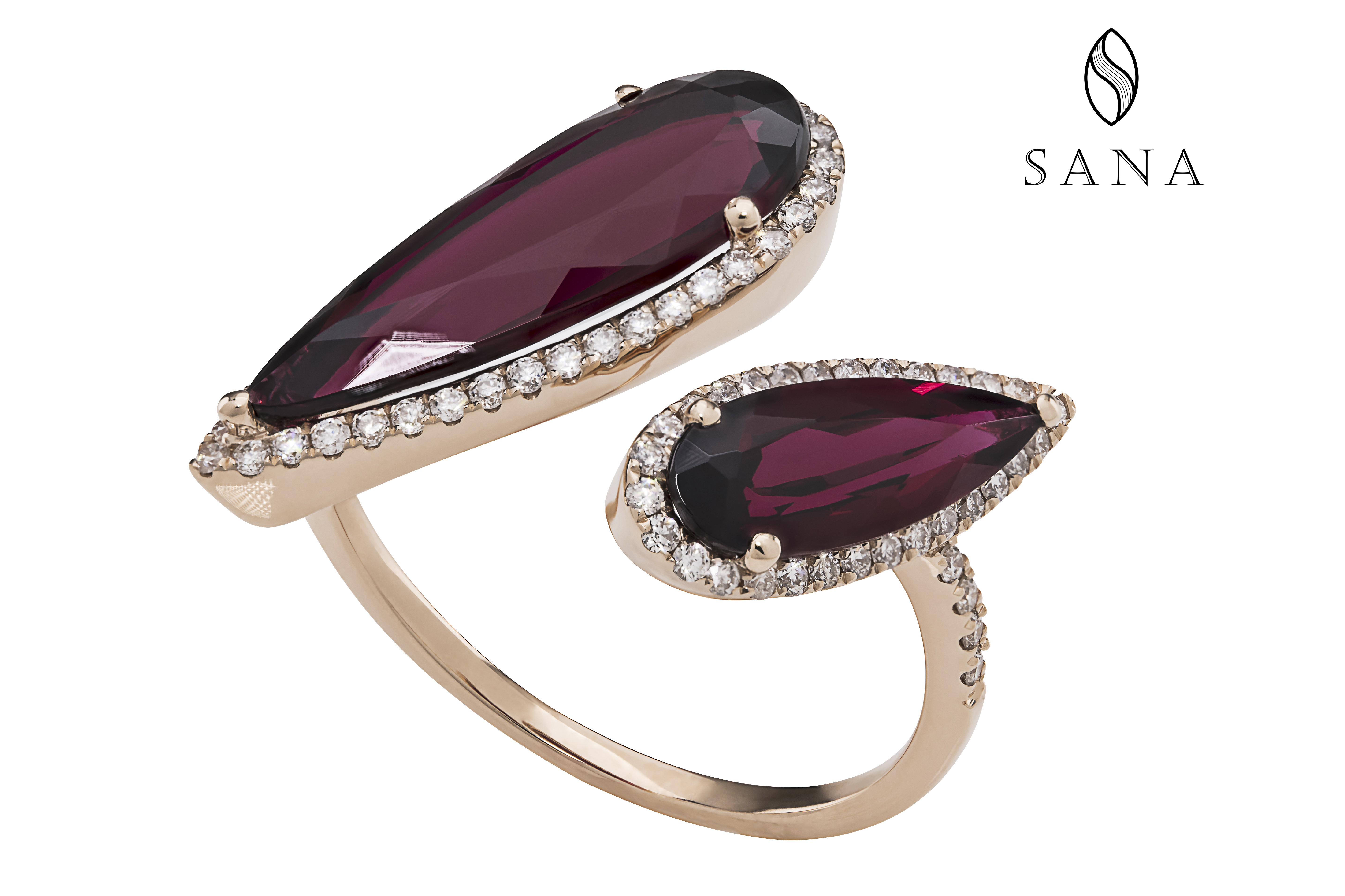 18K Rose Gold with Diamond and Rhodolight Garnet RingGold Weight : 4.35Diamond : 77pcs / 0.42caratRhodolight Garnet : 2pcs / 5.01carat