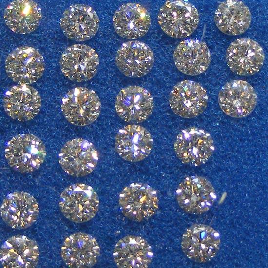 This is a collection of sparkling diamonds. Their round shape is a worth-noting feature, because the 360-degree symmetric surfaces allow them to reflect lights from every angle. Added with the faceted nature, which enables the maximal amount of lights to be reflected, this set of diamonds can create the ultimate beauty, and thus, very valuable.