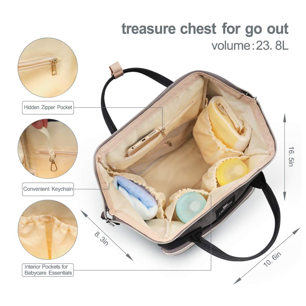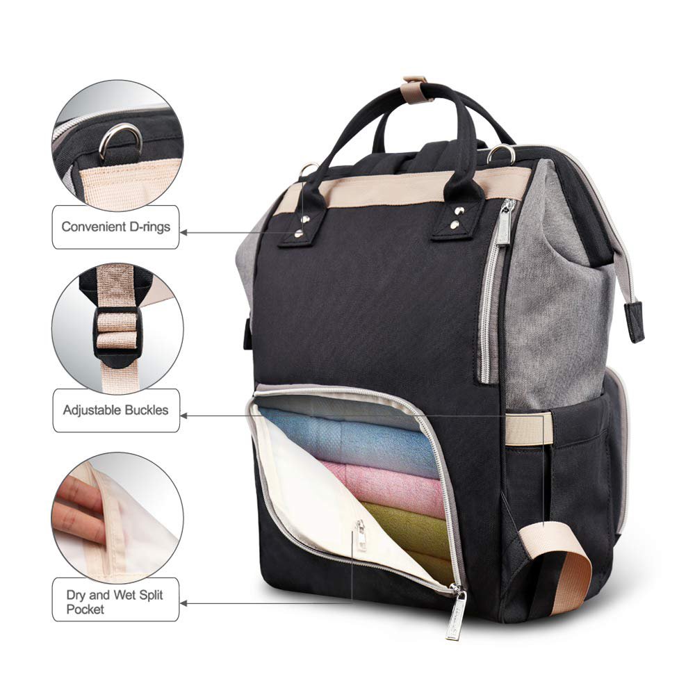 This diaper bag has over 13 separate storage pockets to store everything you'll need for your little one inside, the best part about it is that it's waterproof, easy to clean, durable and lightweight. It will work great for a toddler bag and newborn diaper bag.