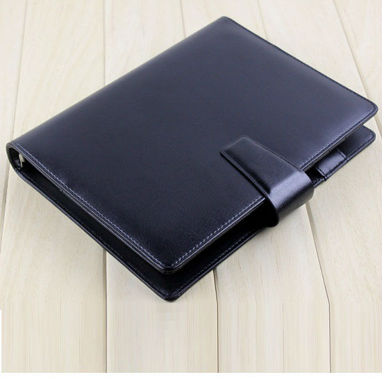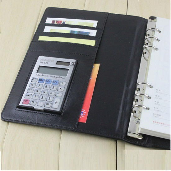Featured here is a diary wrapped with a synthetic leather cover. This multi-function diary is well equipped with lined papers, a calculator and a pen loop and allows neat management with a few slots. It has a convenient binder for refilling paper with ease, making this portable one perfect for journaling or scrapbooking.