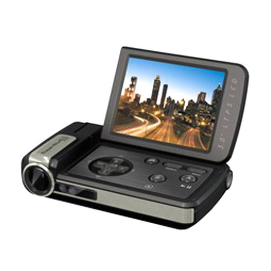 As shown is a multi-function digital camcorder which screen can be flipped over. This digital camcorder works well as a mobile video player. Main function keys are located on the side body of the camcorder for easy operation.
