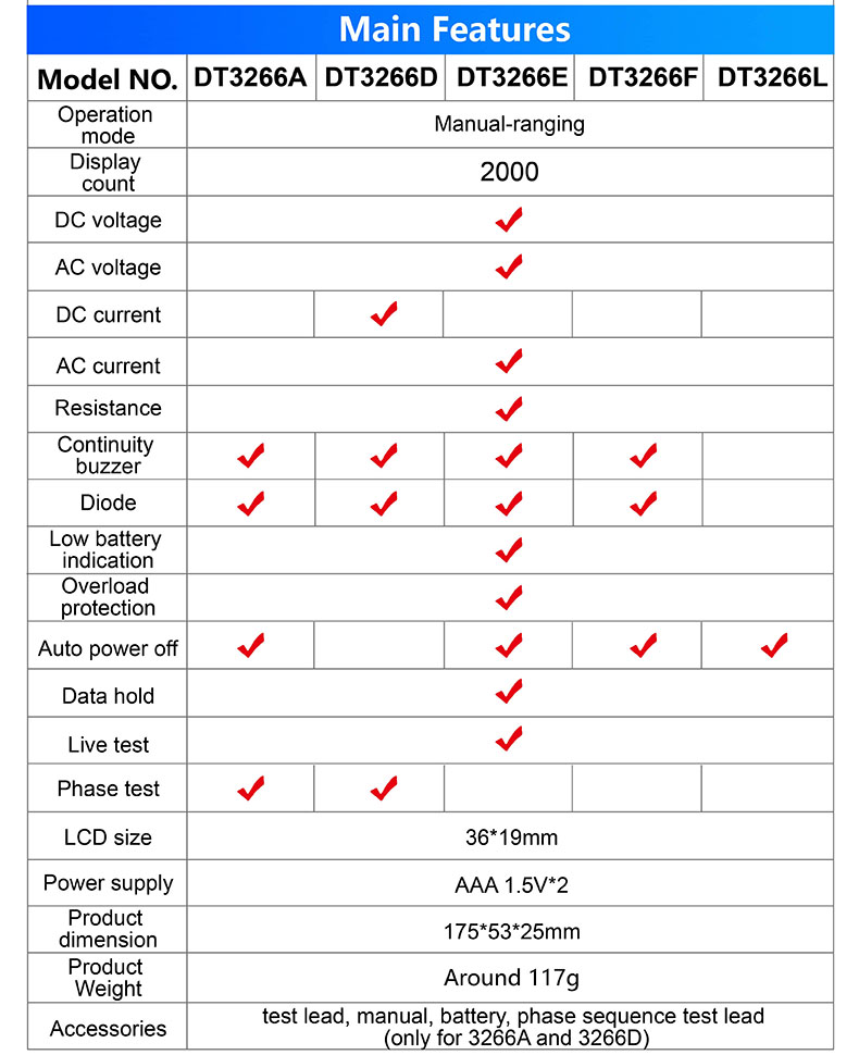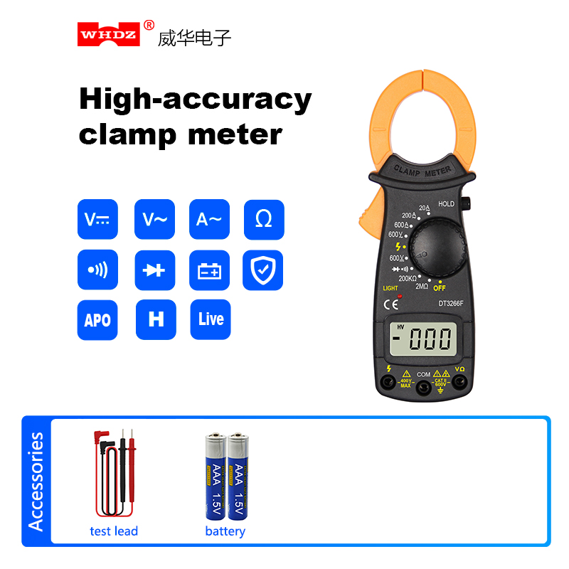 Digital Clamp Meter With Power Live Wire Test DT3266F