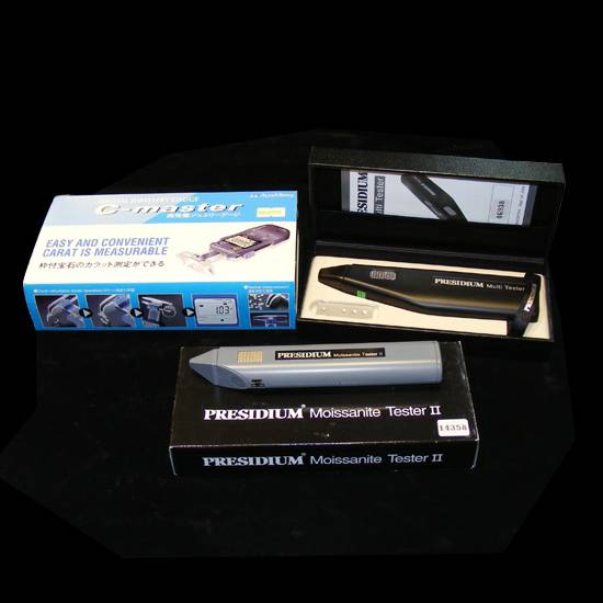 This is a series of digital diamond gauge and tester. The digital diamond gauge measures the diameter and weight of the diamond. The diamond tester performs tests on the physical properties of the diamond to examine if the diamond is genuine.