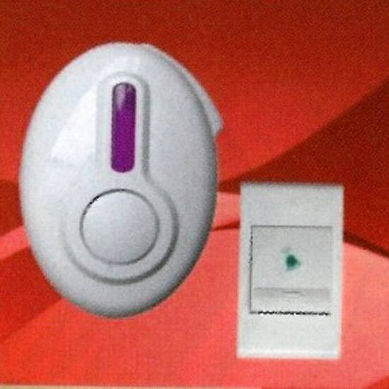 This digital doorbell features a simple white design for a sleek, modern look. The wireless doorbell comes with a push-button transmitter and a plug-in chime. The button is ergonomically designed to provide smooth and easy pressing.