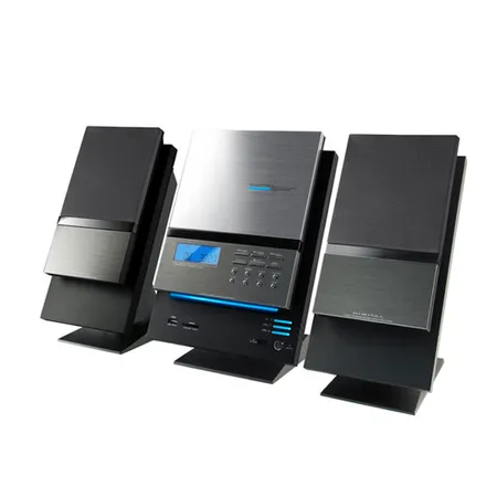 Featured here is an advanced digital home audio system. A face panel made with brushed aluminum and chrome-plated keys gives this home audio system an extra touch of sophistication. This exquisite digital home audio system can be mounted on the wall or used on shelf with desk stands.