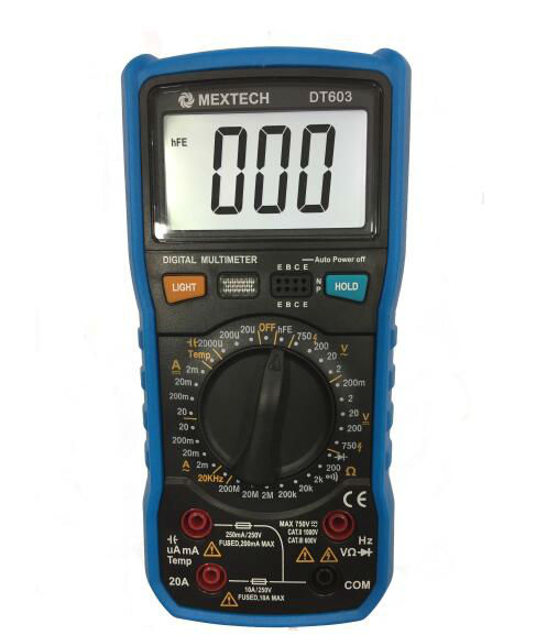 Performs AC/DC voltage, AC/DC Current,Capacitance, Frequency, Resistance etc.