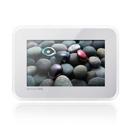 This beautiful digital photo frame lends futuristic appeal to your home with its sleek, polished finish and a high-resolution 12.1" TFT LCD screen. It displays pin-sharp, ultra-bright images with exceptional clarity. Impressive features include an automatic photo slideshow function, background music, a calendar, an alarm clock, and more.