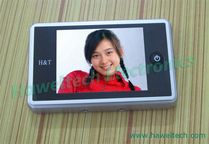 1.Wide view angle:165 degree 2.Low power consumption: 4 AAA Batteries can be used for more than 3 years 3.Clean and big image:0.3 Mega Pixel CMOS sensor,3.5inch LCD 4.Easy assemble: no wires, no damage on the door, no tools 5.Thickness: only 16mm Fits door: 40-70,70-110mm (1.58"-4.32") Fits barrel hole: 14-25mm 3.5 inch:TFT LCD Sensor: 0.3Mega Pixel Viewing Angle: 165 Degrees(D) /120 (H) Power Source:4 AA batteries Product Size: 126*79*16.8mm Color: silver,gold or customized