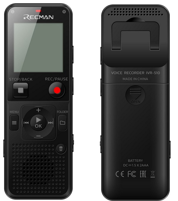 Push one button to record/pause/stop/playback/Delete/Back Material: ABS plastic Recording format: PCM--WAV, 1536kbps ,HQ (high quality)--MP3, 192kbps SQ (standard quality)--MP3, 128kbps Noise cancellation, Voice activated, Timer recording, Hearing aid. Lock buttons while recording Recorded file name will be saved by year/month/date/hour/minute Line-in input, support telephone recording A-B repeat, edit the recording file: T-MARK (divide long recording file into several parts) Built in two stereo microphone Built in diameter 28mm high quality speaker 4/8/16GB memory inside and external micro SD card(up to 64GB) 8GB memory capacity up to 146hours for SQ recording (MP3 128kbps) Screen: segment LCD backlit display Support music playback format: WMA,WAV,MP3,FLAC,APE, 7 levels of Equalization. Power supply:2X AAA batteries. Battery life for recording: About 40hours for PCM, 55hours for HQ, 50hours for SQ. FM tuner and FM recording Dimension:110*39*18mm Accessories: Manual, Earphone, USB cable,external MIC, Strap, 2*AAA Batteries
